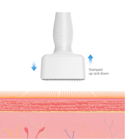 - Simply press the Derma Stamp Micro Needling skin tool into the area you wish to treat, focusing on one area at a time.