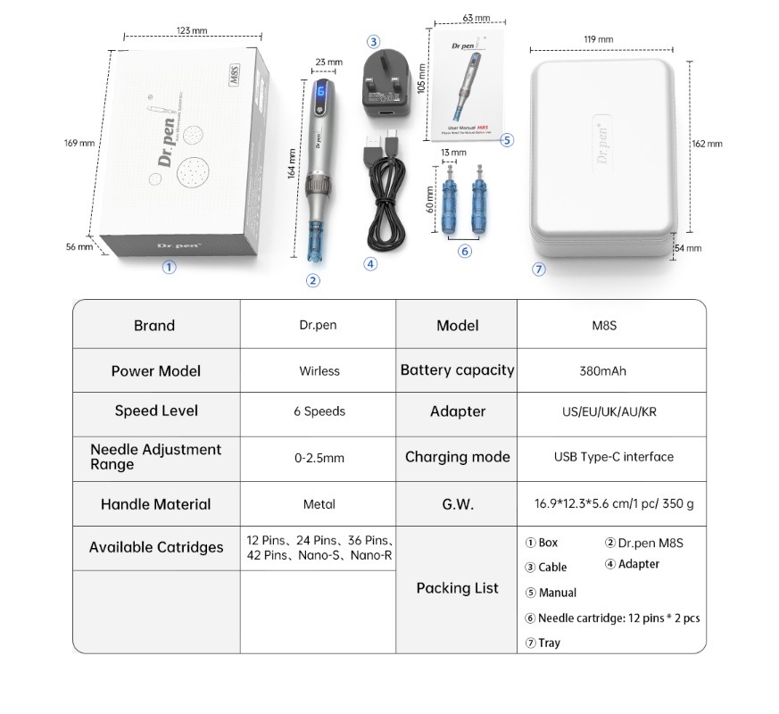 The M8S’ high-performance motor operates at a remarkable speed of up to 16,000 RPM, providing unparalleled efficiency in microneedling procedures. This ensures faster and more effective treatments, delivering optimal results for skincare enthusiasts and professionals alike.