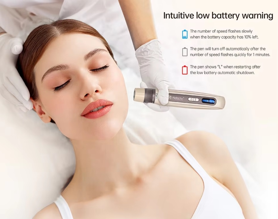 The Hydra Pen 5 offers customizable and even serum distribution with its detachable cartridge, automatic 360° coverage, and adjustable liquid flow settings. This allows for smooth and consistent applications, enhancing the effectiveness of treatments. Improve your skincare routine with the Hydra Pen H5, you can even customize the flow to suit different serum thicknesses using its 1-3 level adjustment.