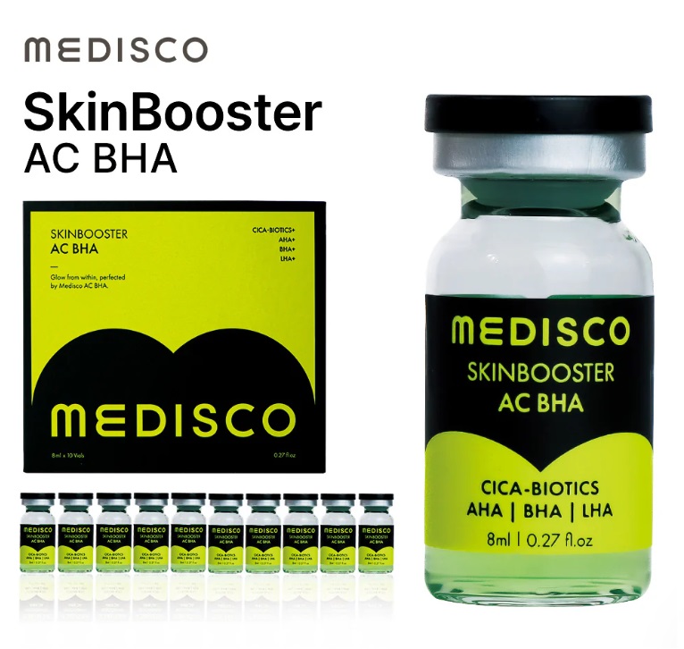 Medisco SkinBooster AC BHA is a professional-grade skin booster designed to target acne-prone, congested, and oily skin. Formulated with a high concentration of AHA (10,080 PPM) and BHA (1,900 PPM), it helps gently exfoliate dead skin cells, regulate excess sebum, and clear impurities from clogged pores for a clearer, smoother complexion.